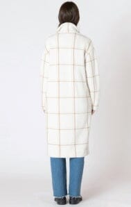 This cream-colored coat reimagines timeless tailoring with a soft, oversized silhouette and a subtle tan windowpane check. The notched lapel and single-button closure lend structure, while the textured wool blend offers warmth without weight. It’s the kind of outerwear that elevates denim and sneakers, yet feels right at home over a crisp dress or tailored trousers. Understated, versatile, and quietly confident — just like your best days.