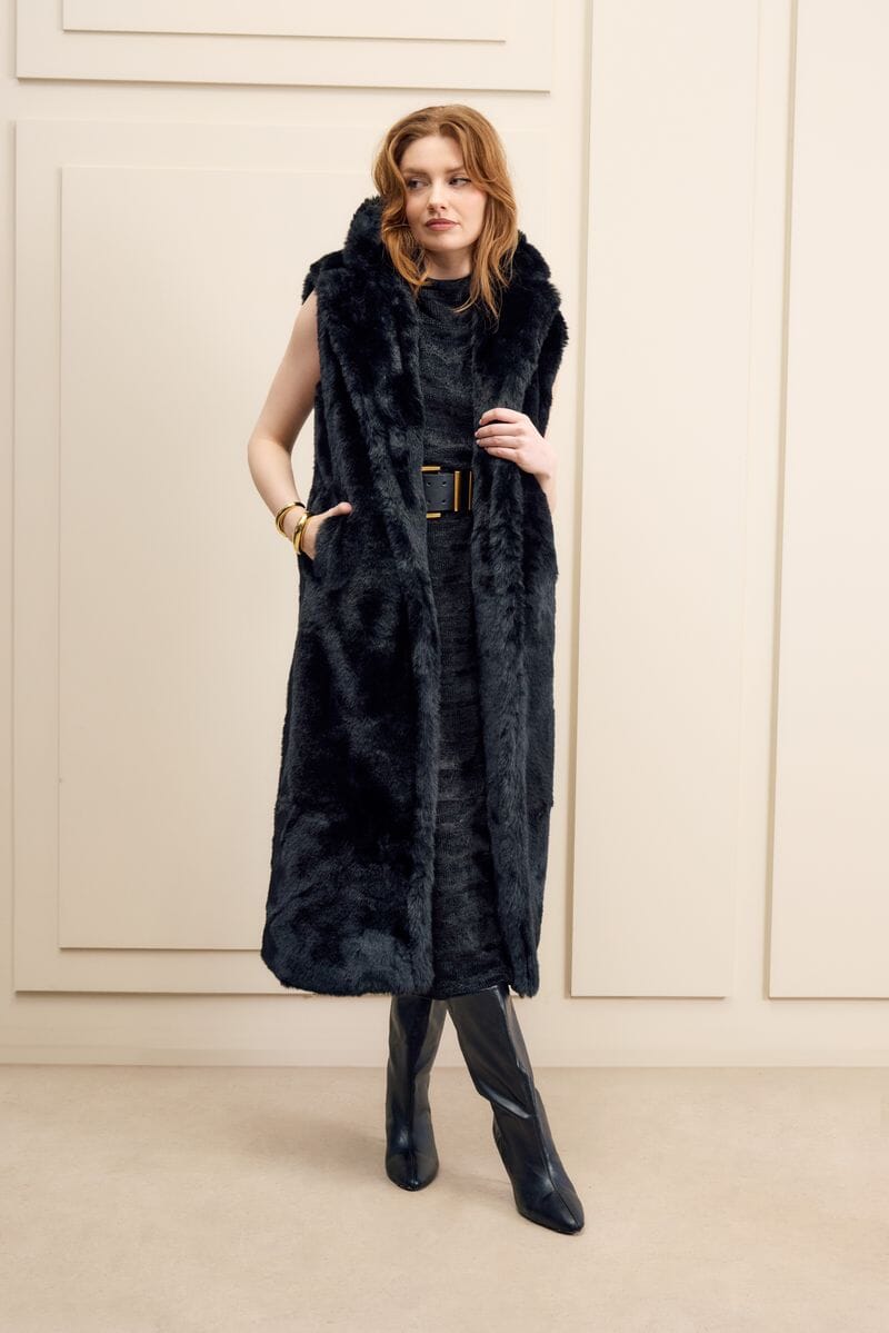Elevate your layering game with this Faux Fur Midi Vest, designed to add warmth and texture without bulk. Its luxurious faux fur fabric offers a soft, cozy feel, making it an ideal statement piece for transitional weather. The midi length enhances coverage and style versatility, seamlessly complementing both casual and refined outfits. Perfect for adding dimension to your wardrobe while keeping comfort at the forefront.