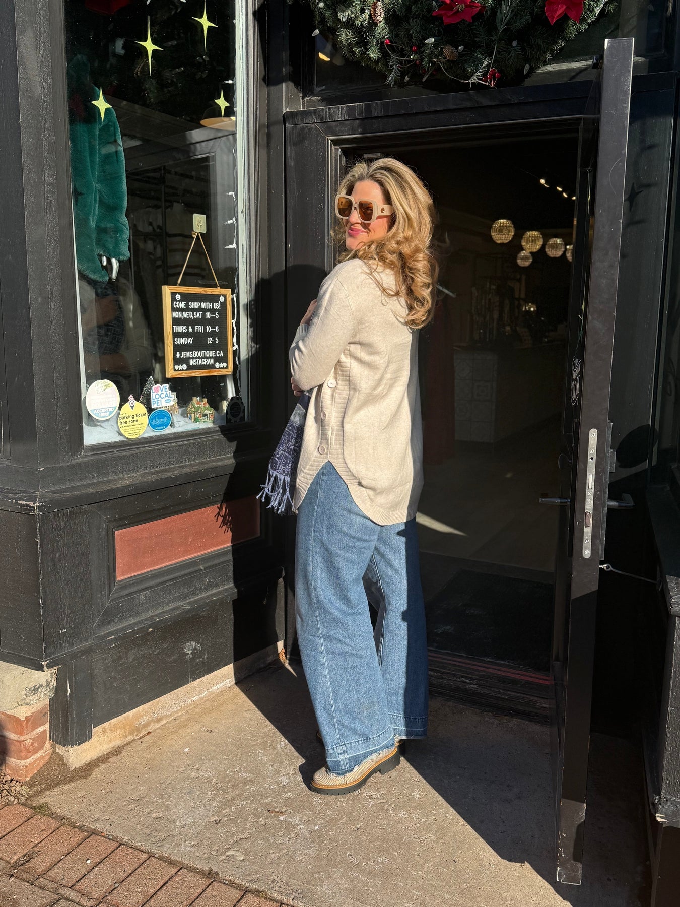 Wrap yourself in understated elegance with our Heritage Cardigan in Soft Sandstone Or slate grey. This timeless knit features a relaxed silhouette with drop shoulders and a gentle drape that flatters every frame. Crafted from a plush, breathable blend, it’s the perfect layering piece for crisp mornings and golden afternoons.