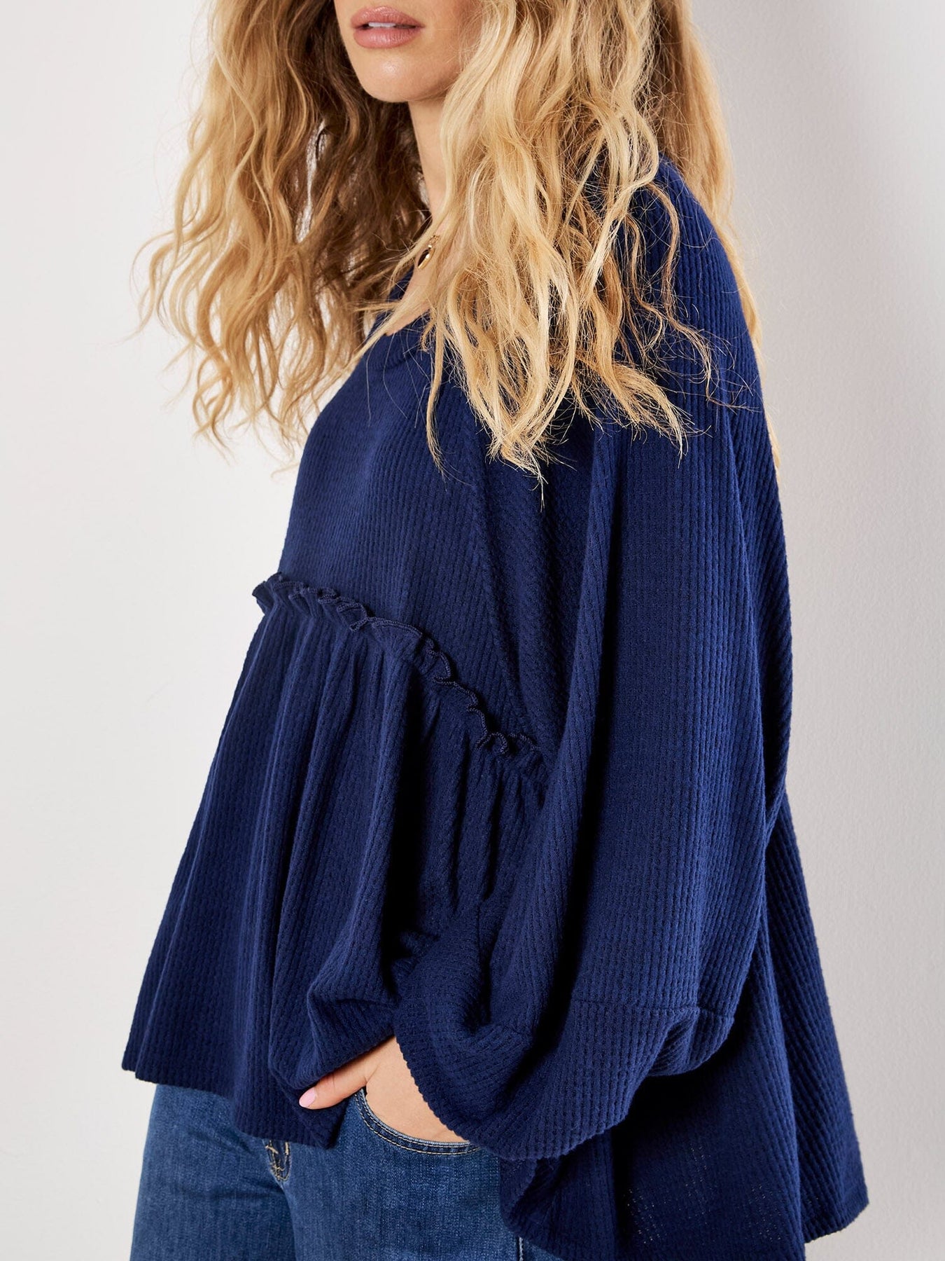 Waffle Knit Babydoll Oversized Top TOP Apricot Collections